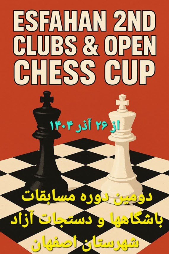 هیات شطرنج شهرستان اصفهان در نظر دارد دومین دوره مسابقات اوپن تیمی دسته دوم باشگاهها و دستجات آزاد شهرستان اصفهان را با شرایط زیر و از تاریخ ۲۶ آذر ۱۴۰۴ طبق جدول زمان بندی اعلام شده برگزار نماید: